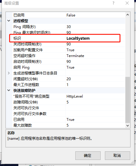 设置站点的应用程序池的启用账户为:LocalSystem。